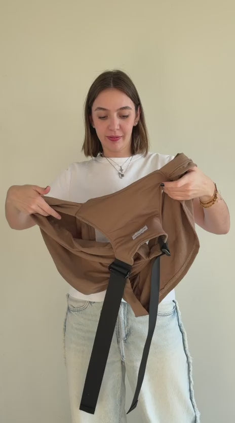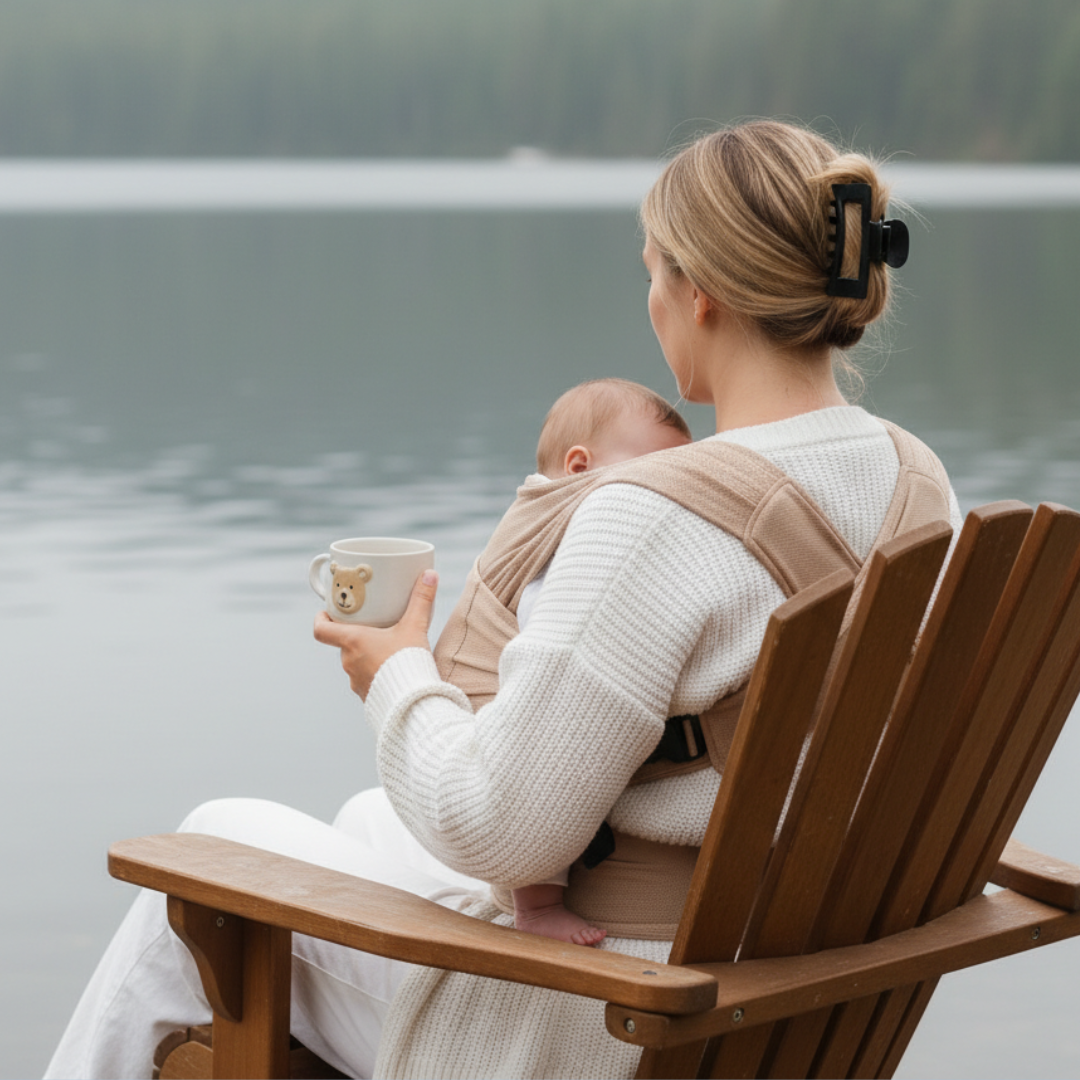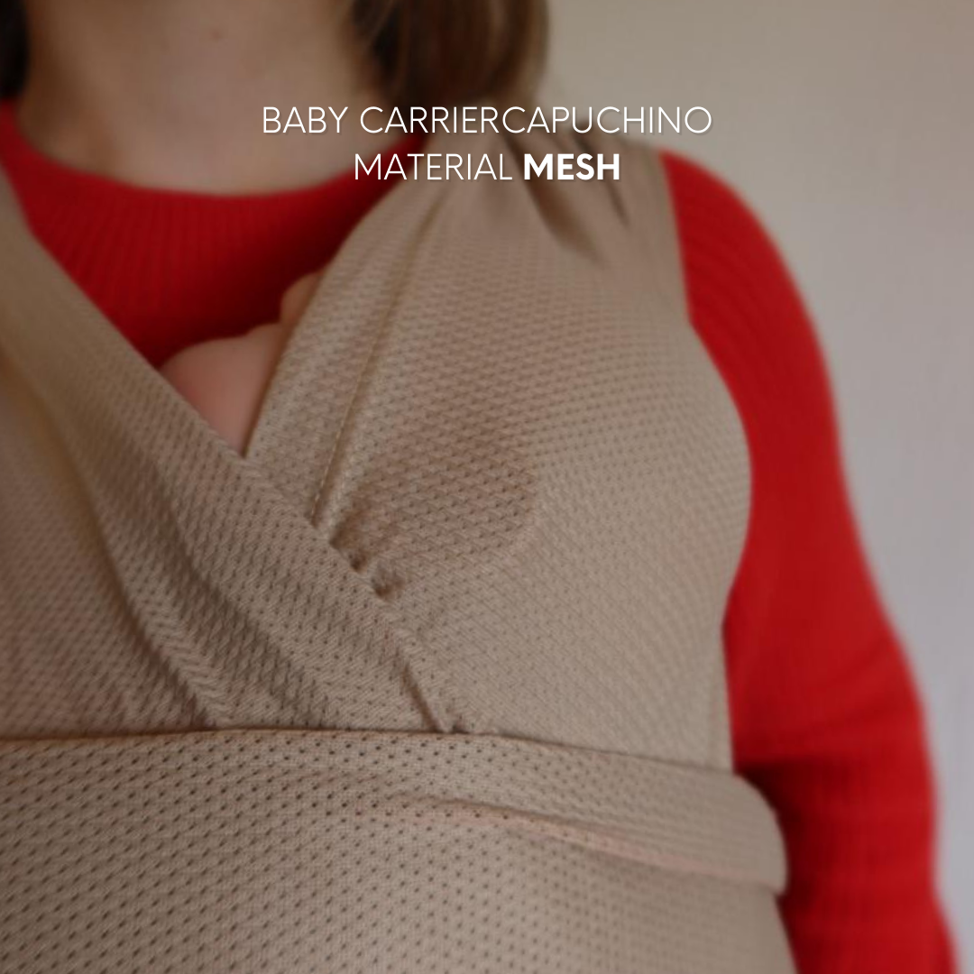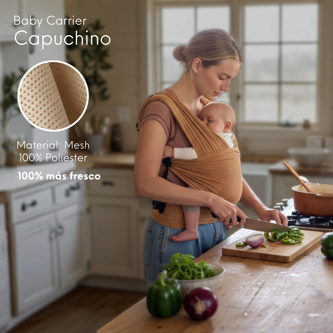 Tu bebé entra y queda pegadito a tu pecho. Siente tu calor, tu respiración, tu latido. Es como volver al útero — pero con vista.