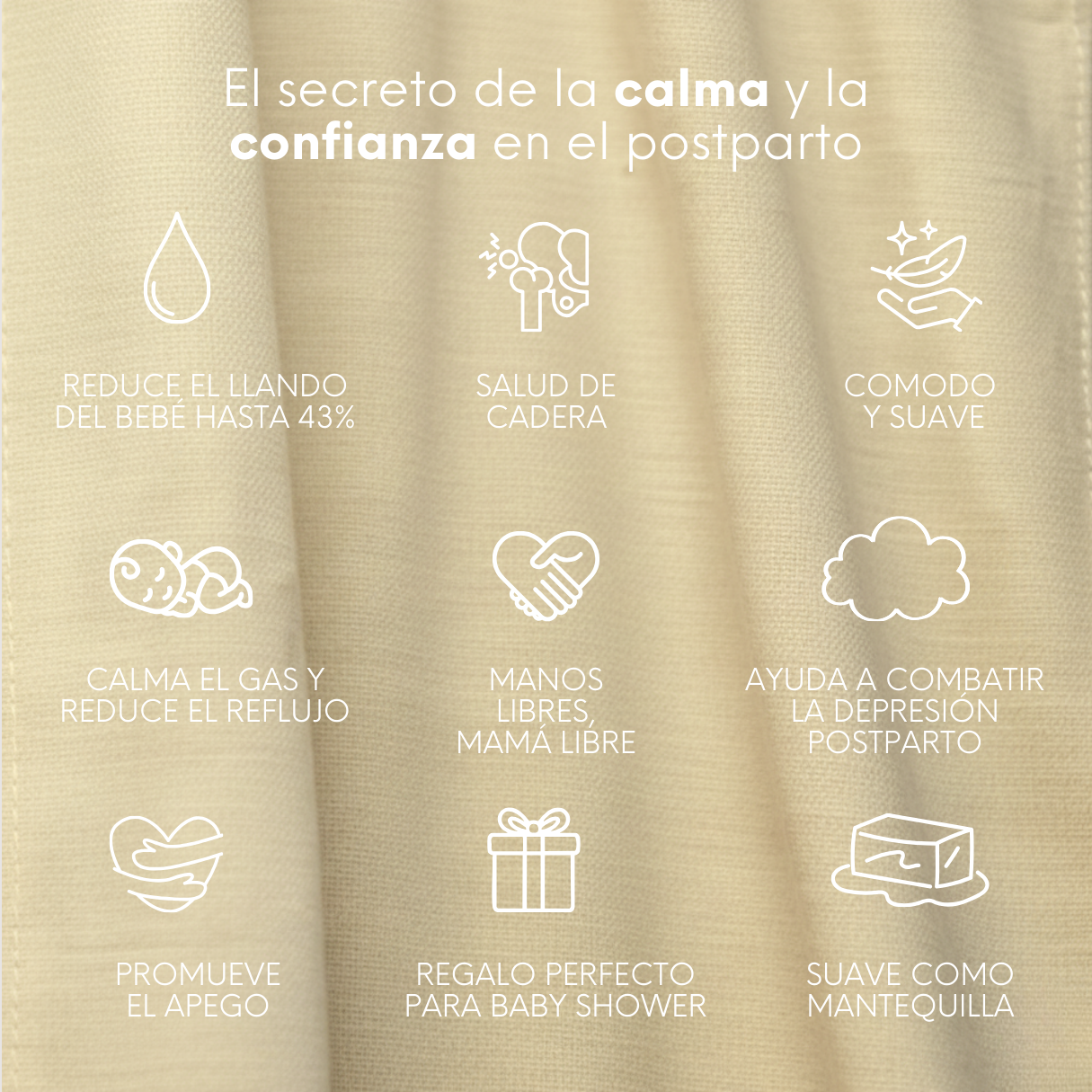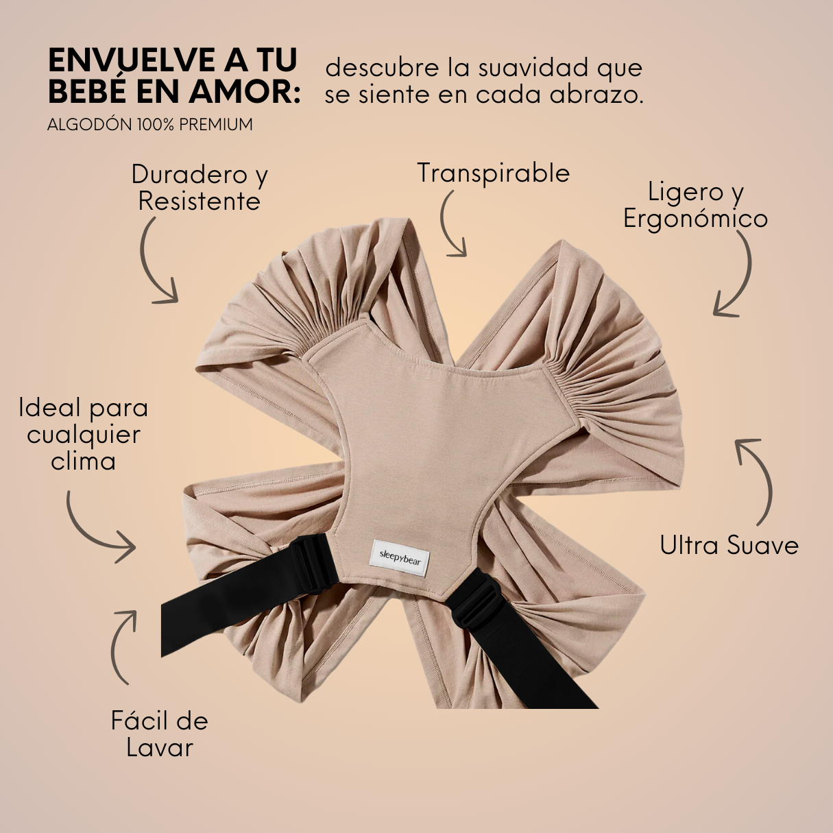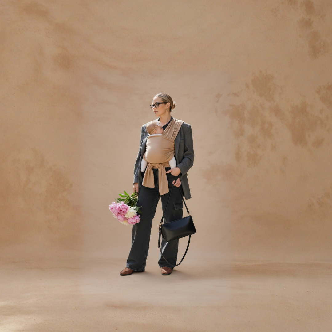 Tu bebé entra y queda pegadito a tu pecho. Siente tu calor, tu respiración, tu latido. Es como volver al útero — pero con vista.